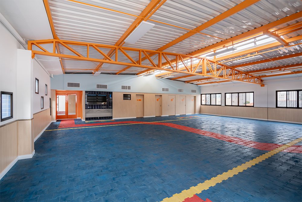 Reformas que precisam ser executadas no prazo curto das férias escolares sempre exigem um projeto que foque em soluções rápidas com o mínimo de obra civil possível e com uma parceria forte entre a equipe de projeto e a equipe de execução.